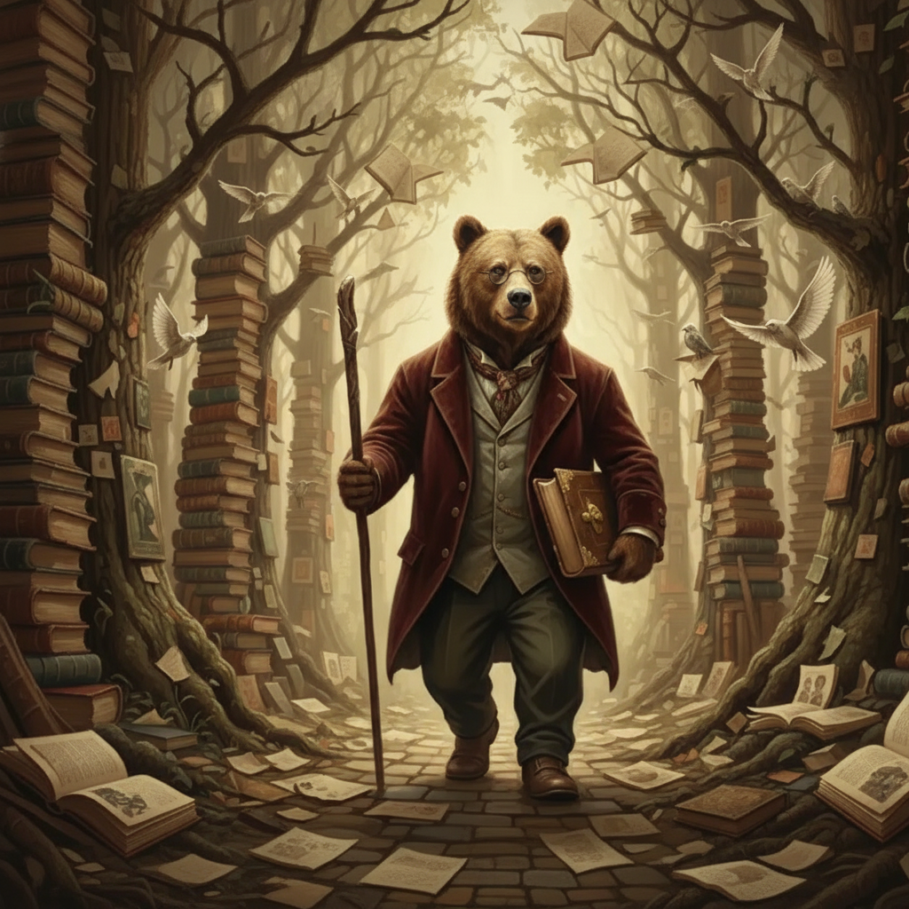 Кстати, медвежонок, который живёт на логотипе издательства «Товарищество Виноградова», как раз появился на свет на полях моего читательского дневника, и часто там появляется, попадая в разные занимательные ситуации. Я просто рисую своего медвежонка, а потом дорисовываю то, что вокруг него происходит. Повторюсь, я не художник — поэтому обычно появляются деревья и города. Но случается всякое, и наблюдать за медведем всё интереснее. Постепенно он начинает жить какой-то своей жизнью, я ему позволяю.
