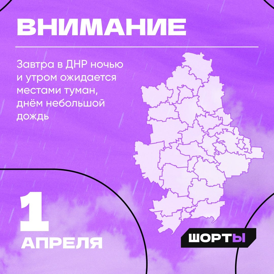 Завтра в ДНР ночью и утром ожидается местами туман, днём небольшой дождь