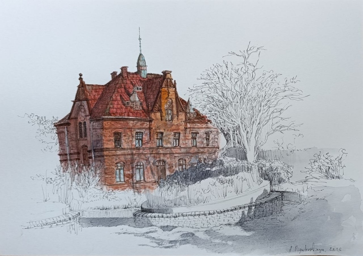 paper, watercolors, isograph . ул. Пугачёва 1, г. Зеленоградск, Калининградская область (до 1946 года: Кранц, Восточная Пруссия) . Здание администрации курорта Восточной Пруссии. Построено в начале ХХ в. В послевоенные годы в здании располагалась водогрязелечебница, позже - цех по разливу минеральной воды. . Обычно я не выкладываю незавершённые работы... Но почему-то, очень уж захотелось это сделать сейчас. Слишком уж неоднозначное время... . #art #sketch #watercolors #architecture #apigulevskaya_art
