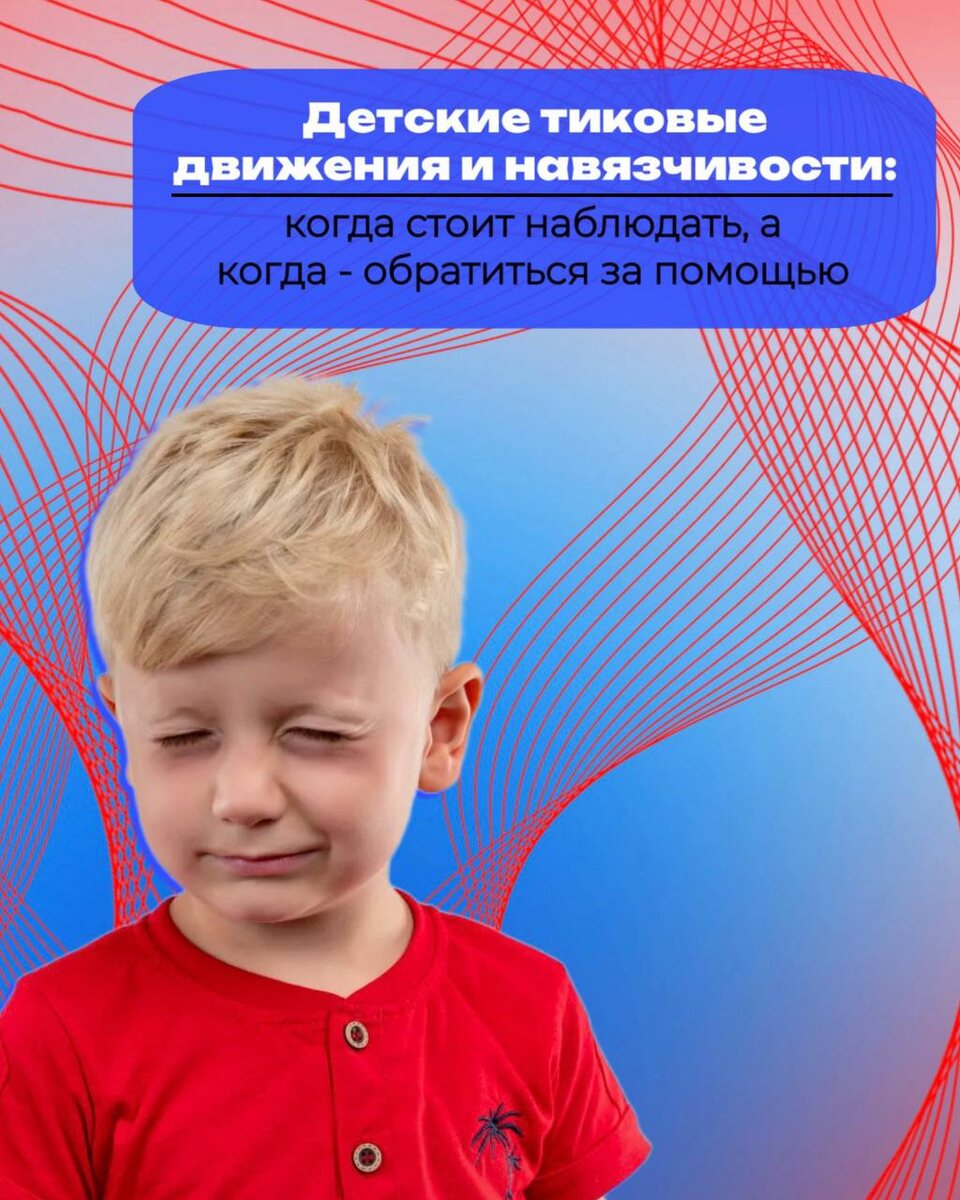 ❓ Спойлер: паниковать раньше времени не стоит Бывало такое, что вы ловите ребенка на том, как он в сотый раз за час дергает плечом или накручивает прядь волос на палец. И внутри сразу включается тревога: «Это нервы? Это тик? Что я упустила?» Давайте разберемся ⬇️ Такие повторяющиеся движения у детей - явление частое. Нервная система малыша созревает постепенно, и на усталость, стресс или даже просто перевозбуждение она может реагировать именно так Обычно мы имеем дело с одним из трех вариантов: 1️⃣ Тики Это непроизвольные «сбои» программы: моргание, подёргивание плечом, покашливание или похрюкивание. Они часто усиливаются, если ребенок устал, не выспался или переволновался 2️⃣ Навязчивые движения Это действия, которые ребенок словно должен сделать, чтобы сбросить внутреннее напряжение: потереть руки, крутить волосы, постоянно трогать какой-то предмет 3️⃣ Привычные успокаивающие действия Тут все проще: малыш сосет воротник или накручивает локон перед сном. Это способ саморегул