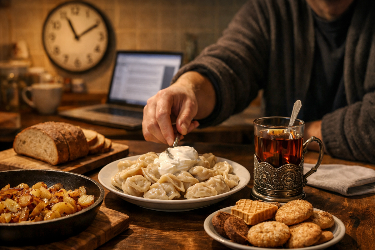 В офисе ты часто ел по расписанию, потому что есть обед, есть перерыв, есть привычка. Дома питание легко превращается в плавающий туман: поздний завтрак, перекус на бегу, “сейчас доем супчик”, вечером нормальный ужин, потом чай.