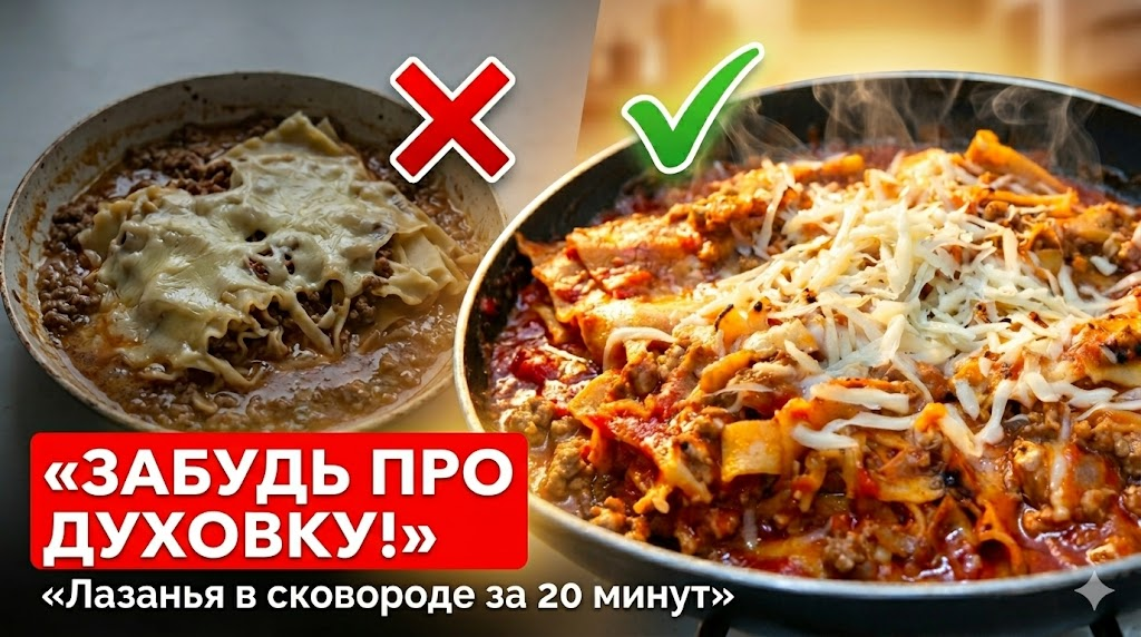Девочки, давайте честно: классическая лазанья — это проект на полдня. Сначала соус Бешамель, потом Болоньезе, потом бесконечные слои и томительное ожидание у духовки. В итоге часто бывает так: сверху всё подгорело, а листы внутри остались сухими. Я обожаю итальянскую кухню, но стоять у плиты в будни после работы столько времени — это выше моих сил. Всё изменилось, когда я попробовала приготовить лазанью прямо в глубокой сковороде. Оказалось, что при таком способе листы теста не просто запекаются, а буквально «томятся» в мясном соусе. Результат меня поразил: это сочнее, быстрее и не нужно отмывать тяжелые формы для запекания. Теперь это мой коронный «ужин-пятиминутка», который по вкусу не уступит ресторанному. Большинство боится, что лазанья на сковороде превратится в кашу или слипшийся ком теста. Это происходит только в одном случае — если вы используете слишком мало соуса или кладете листы целиком. Тесту нужна влага, чтобы стать нежным. Если соуса недостаточно, листы просто вытянут вс