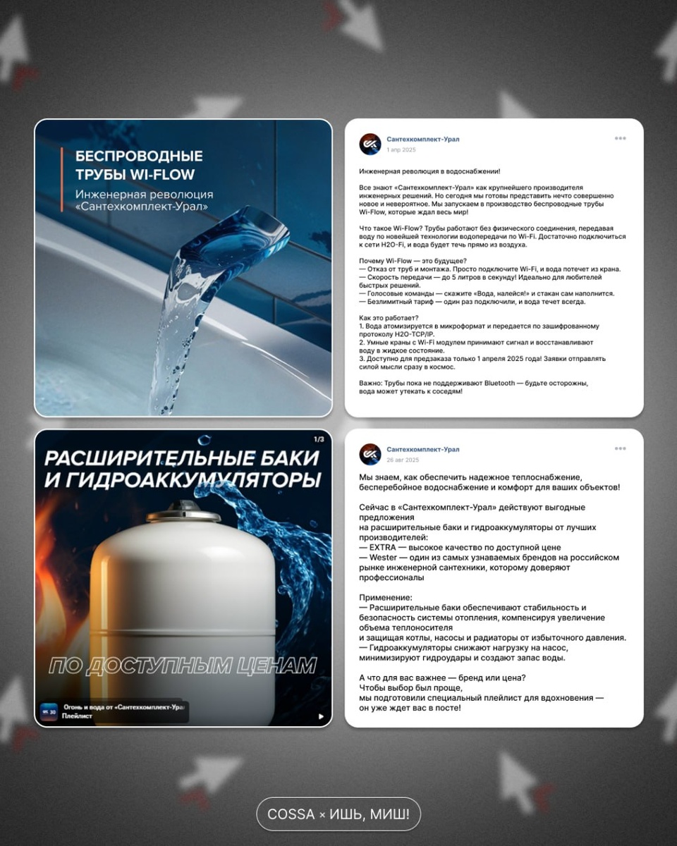 Те самые ребята из Ишь, Миш! показывают силу контента на практике 😌. Рубрика для клиентов, контент-маркетологов, сммщиков, копирайтеров и редакторов. Бизнес-задача. Выделить «Сантехкомплект-Урал» — крупнейшую инжиниринговую компанию среди однотипных конкурентов и оживить коммуникацию в технической нише, где контент часто выглядит сухо и не вовлекает. Контент-решение. Переосмыслили традиционные форматы инженерного B2B и сделали ставку на креативную подачу: игровые механики, легкий визуал, иронию и сторителлинг. Такой подход помог объяснять сложное простыми словами, сохраняя экспертность, но добавляя эмоции и узнаваемость. Результаты. Контент стал отличаться от типового по сфере: его хочется смотреть и пересылать друзьям, он вызывает отклик и делает бренд более понятным и запоминающимся для аудитории. Как повторить. 1️⃣ Не бойтесь креатива даже в технических нишах — он работает на узнаваемость. 2️⃣Упрощайте сложное через сторителлинг и визуальные приёмы, не теряя экспертности. 3️⃣До