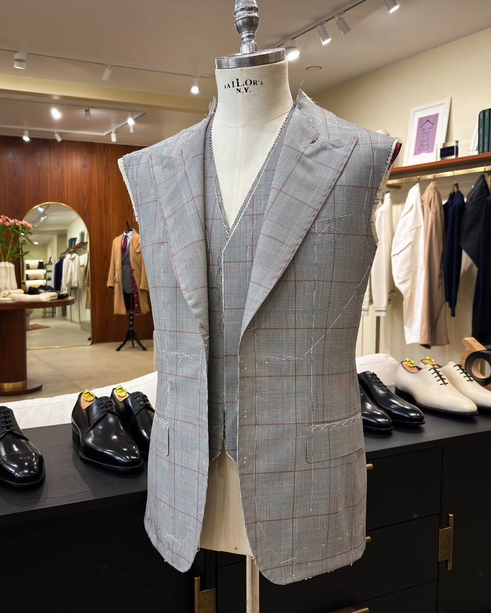 Подписывайтесь на наш новый канал в MAX. В нём вы наверняка увидите (в отличие от нашего привычного канала в Telegram), как эта примерка в выразительную клетку Принц Уэльский превратится в элегантный костюм-тройку. Спасибо!