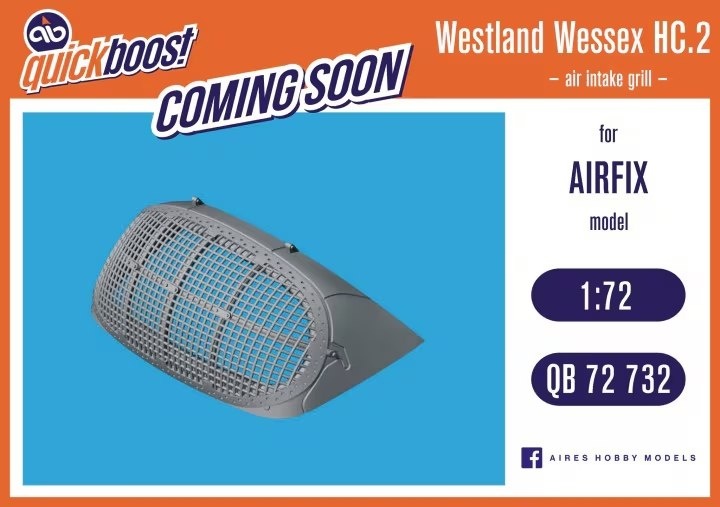 Чешская Quickboost выпустила на 3D-принтере сетку воздухозаборника для модели Westland Wessex HC.2 в масштабе 1/72 от Airfix: