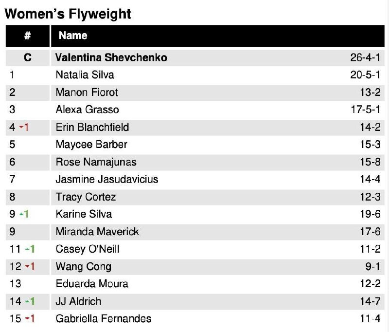 ⬇️Исраэль Адесанья упал на пять позиций рейтинга среднего веса UFC ⬆️Джо Пайфер поднялся на восемь позиций рейтинга среднего веса UFC ⬆️Брендан Аллен влетел в топ-5 рейтинга среднего веса UFC 🆕 Тайрелл Форчун влетел в топ-10 тяжелого веса UFC 👊 Подпишись на Meta MMA | Meta MMA в MAX | Наш канал в ВК