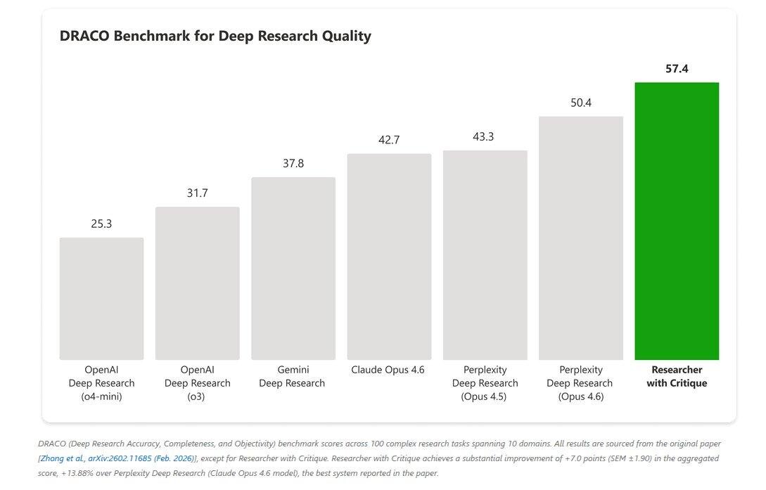 Проблема одной модели в том, что ей приходится одновременно планировать, искать, писать и проверять саму себя. Именно поэтому бизнес сомневается в таких отчётах: выглядят аккуратно, но могут опираться на слабые или непроверенные данные. Подход Critique разделяет роли. Одна модель исследует и пишет, другая проверяет источники, полноту и фактическую обоснованность перед финальной отправкой отчёта. На бенчмарке DRACO (100 задач, 10 доменов, оценка через GPT-5.2) система набрала 57.4 балла. Это на 13.88% выше лучшего результата из исследования. Основной прирост в ширине и глубине анализа, качестве подачи и точности фактов. Логично, потому что отдельная модель-ревьюер заточена на поиск пробелов, слабых аргументов и сомнительных источников. Главное здесь не «две модели лучше одной», а разделение ролей. Каждая модель делает свою узкую задачу, вместо попытки одной системы быть исследователем, автором, редактором и фактчекером одновременно. И это уже не столько исследовательский прорыв, ск