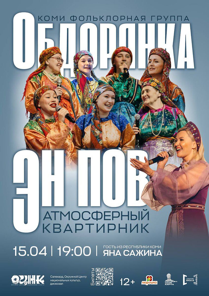 » 🎸 Квартирник «Эн пов» (Не бойся) — это эксперимент, где традиционные коми мотивы встречаются с атмосферой уюта и живой акустикой. ⭐️ Гость вечера — певица из Республики Коми Яна Сажина. В программе: • фольклорные и авторские песни под гитару; • коми язык в необычном звучании; • живое общение в уютном формате. Приходите услышать культуру по-новому 🎶 Билеты доступны по ссылке: clck.ru/3SrSkY , по Пушкинской карте или через сервис «Морошка» со скидкой 20% До встречи в Окружном Центре национальных культур! 👍 в ВК | МАХ