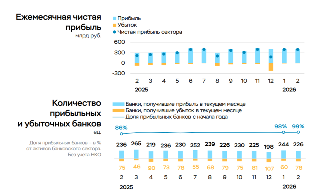Чистая прибыль банковского сектора в феврале 2026 г. — процентные доходы увеличиваются, прибыль показывает уверенный рост!
