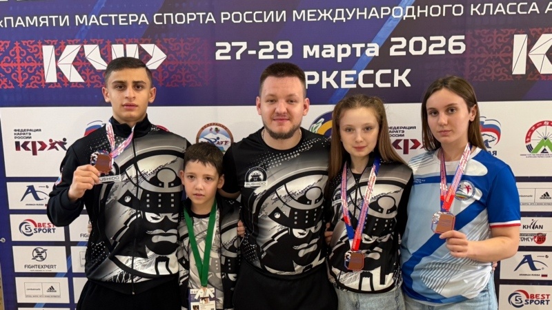 С 27 по 29 марта в Черкесске проходил Всероссийский турнир памяти мастера спорта России международного класса Аслана Кокаева. Соревнования проводились в пятый раз. В этом году в турнире приняли участие более 1100 спортсменов из 24 регионов России, почти в два раза больше, чем в 2025 году. Каратисты спортивного клуба «Бушидо» не затерялись на столь представительных соревнованиях, выступили очень достойно и завоевали 4 бронзовые медали. Отличились Константин Ценин (юноши 10-11 лет, весовая категория до 30 кг), Софья Пупченко (девушки 12-13 лет, весовая категория до 42 кг), Арсен Беджанян (юноши 14-15 лет, весовая категория до 57 кг) и Софья Райхель (юниорки 16-18 лет, весовая категория до 59 кг). Тренирует спортсменов Радислав Белкин. Поздравляем спортсменов и тренерский штаб с завоеванными медалями и желаем дальнейших успешных выступлений! Сергей Титарев