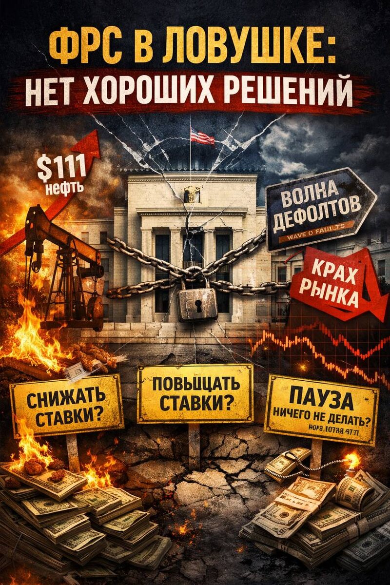 Сейчас происходит момент, который большинство предпочитает не замечать. Война, скачок нефти, давление на рынок труда — и на этом фоне Федеральная резервная система США оказывается в ситуации, где любое решение ухудшает систему. Разберём эти сценарии. Сценарий 1: снижать ставки Нефть уже разгоняет инфляцию. Энергия → логистика → продукты → всё дорожает по цепочке. Если ФРС начинает резать ставки: — дешёвые деньги снова разгоняют спрос — инфляция получает вторую волну — доверие к политике регулятора падает Фактически это означает: они сами разжигают новый инфляционный цикл Сценарий 2: повышать ставки На первый взгляд — логично: давить инфляцию. Но есть нюанс: — экономика уже теряет рабочие места — бизнес сидит на дешёвом долге прошлых лет — огромный слой компаний живёт только за счёт низких ставок Повышение ставок → рост стоимости обслуживания долга → дефолты. Это уже не локальный стресс. Это может стать системной цепной реакцией уровня Финансовый кризис 2008 года, но с горазд