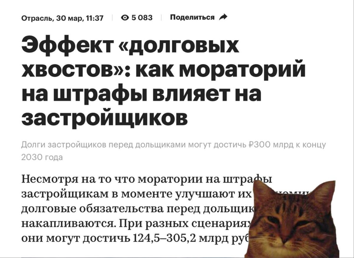 Оценку задержки ввода и предположительный объем отсуженного у застройщика штрафа нужно включать в оценку инвестиционной привлекательности проектов. Исходя из этого — планировать свои вложения. Вот что пишет РБК: «Долговые хвосты» по невыполненным обязательствам застройщиков перед дольщиками на конец 2026 года могут составить (в зависимости от того, какой сценарий реализуется) от 103,4 млрд руб. до 138,5 млрд руб., а к концу 2030 года вырастут до 124,5–305,2 млрд руб. Логика такая: — Выбираем объект с потенциально максимальной задержкой от стабильного застройщика. — Оцениваем срыв сроков, нанимаем хорошего юриста и вкладываем ожидаемую сумму штрафа по суду в доходность операции. — Нюанс. Вообще ничего не подписываем по пути задержек. 🔺Треугольный метр: На сайте | в MAX | Telegram | ВКонтакте | Дзен