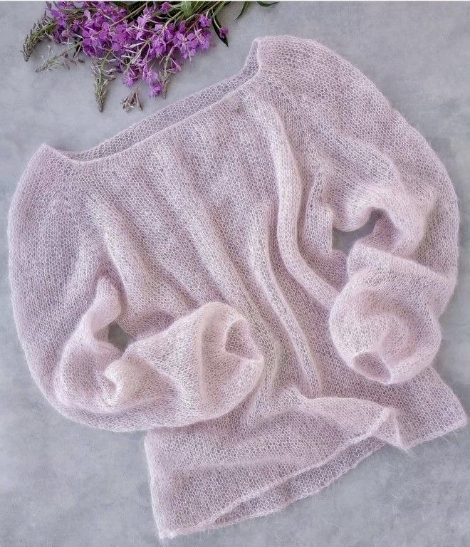 Свитер из мохера связанный тонкой нитью типа «паутинка» (кид-мохер или классический мохер супер тонкого прядения).