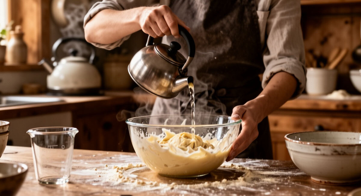 Зачем опытные хозяйки добавляют кипяток в тесто? Секрет простой выпечки, которая получается с первого раза, — в клейстеризации крахмала.
