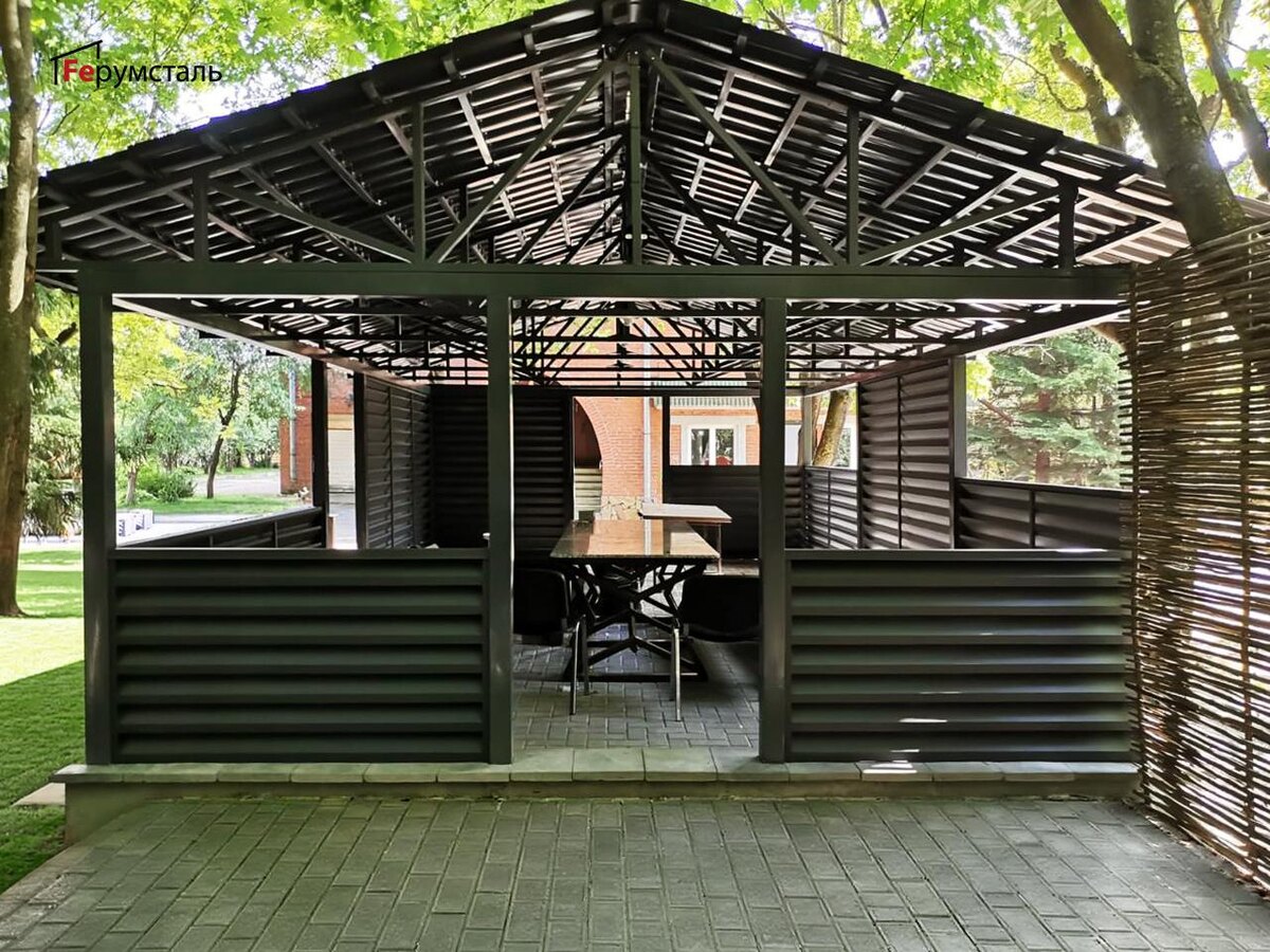Такую беседку мы сделали в прошлом году, которую заказчик собрал самостоятельно. В данном проекте использовали секции жалюзи ФС Стандарт СТ-140 различной высоты. Напишите нам, подготовим индивидуальный проект под ваши размеры. ferumstal.ru | +7 (495) 135-16-49 💬 Есть вопрос? Напишите нам Подписывайтесь на Feрумсталь 💙 VK • 📝 Дзен • 📺 Youtube • 📺 Rutube #заборжалюзи #ферумсталь #нестандартныйпроект