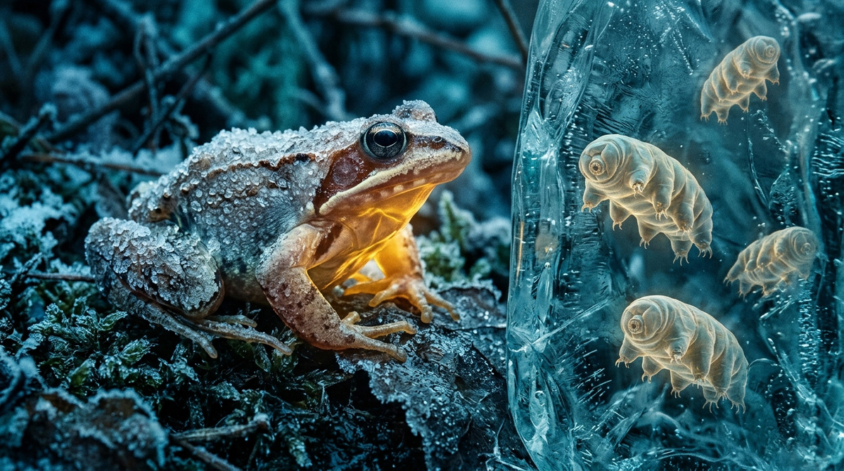 Лесная лягушка совершает, пожалуй, самый невероятный трюк в животном мире. Когда наступает зима, это удивительное земноводное позволяет до 65% воды в своём теле превратиться в лёд. Её сердце перестаёт биться, дыхание прекращается, а активность мозга полностью замирает – однако весной она оттаивает и упрыгивает, как ни в чём не бывало.