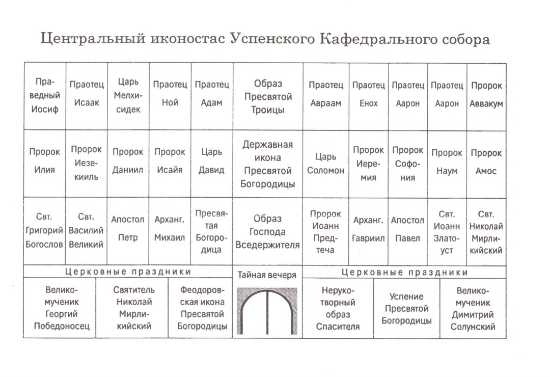 Подготовлен новый миссионерско-просветительский материал для бесплатного распространения - схема центрального иконостаса Успенского собора города Иваново. Схема весьма востребована всеми, кто так или иначе посещает собор. Люди невоцерковленные задают много вопросов об устройстве пятиярусного иконостаса, выполненного в классических русских традициях. Иконостас - это окно в мир горний, связь между землей и духовным небом. По словам известного русского мыслителя, священника Павла Флоренского, тесно связанного с Ивановской землей, иконостас не закрывает, а, наоборот, открывает глазам человека происходящее в алтаре.
