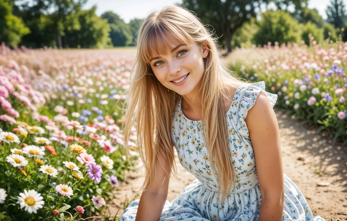 Create a photorealistic fashion portrait based on the uploaded image. Keep the same face, features and identity exactly. Scene: spring park or riverside at golden hour. Outfit: flowing pastel spring dress, fabric moving in wind. Camera: 50mm fashion editorial, soft warm light, natural skin texture. Pose: walking forward, slight turn, natural smile. No face modifications, no doll-like retouching, no extra people, no text or logos. Output in vertical format, aspect ratio 2:3.
