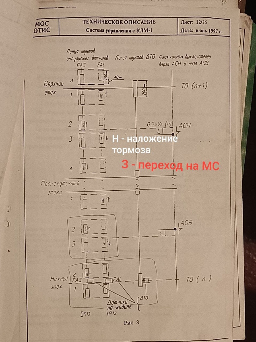 Переход на малую скорость осуществляется, когда импульсный датчик FAS находится в шунте «2» (см. рис. 9) при движении вверх или датчик FAI находится в шунте «3» — при движении вниз.