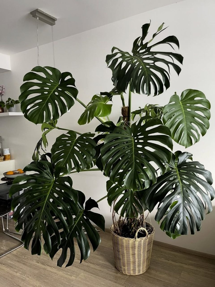 »? В благоприятных условиях монстера цветёт и плодоносит! Её съедобные плоды напоминают початок кукурузы. Когда они созревают, мякоть пахнет смесью банана, ананаса и манго. Вкус — как тропический десерт. Но будьте осторожны: незрелые плоды ядовиты, как и всё растение. Монстера деликатесная любит яркий непрямой свет, тепло и регулярный полив. Чтобы листья росли дырявые, предостпвьте хорошее освещение и опору. Для посадки используйте тесные горшки и хорошо дренированные субстраты.