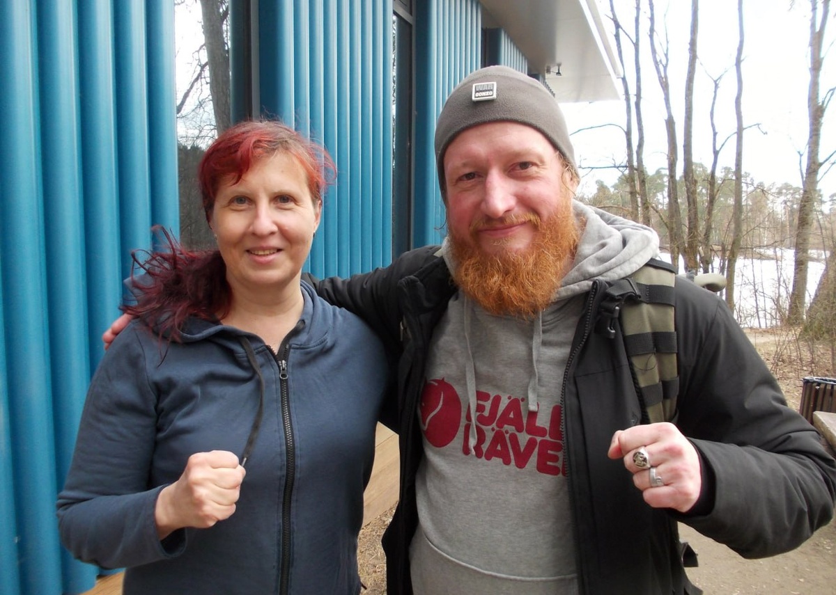Поплавала даже немного. Солнце, весёлая молодёжь. И вдруг вижу – Семён Пегов навстречу идёт. Я вообще-то знала, что он в холодной воде купается, наслышана от общих знакомых. Причём ещё до того, как мне рассказали об этом, мне как-то раз, 3 февраля 2018 года, сон приснился, копирую из поста: «О странном. Приснилось мне сегодня, что заманила я на моржевание в Серебрик известного военкора Семёна Пегова. И вот он так настороженно-скептически заходит в прорубь, подныривает и поднимается с черепом в руках. Череп явно какой-то зверюги, может собаки крупной или типа того. Череп довольно старый - слегка ветхий, сероватый. С вмонтированными в него элементами изрядно заржавевшей металлической конструкции - на носу и на макушке. На носу при этом скоба, из которой торчат два гвоздя. Не знаю, что и подумать. ))) Семён, если практикуете, как будете в Москве - приглашаю моржануть. Череп не обещаю, хотя кто ж знает.» И вот оно неожиданно одно к одному сложилось. Окликаю, Семён поворачивается и здор