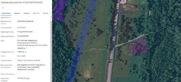 Название: Земельный участок с кадастровым номером 47:22:0817001:650, площадью 1959 кв