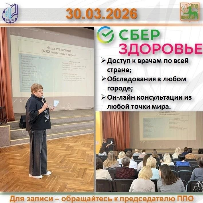 Профсоюза образования Кузнецова Ирина Тимофеевна выступила на собрании коллектива ГАОУ Школа «ШИК 16» и презентовала программу СберЗдоровье. 🔖 Ирина Тимофеевна рассказала не только об особенностях и преимуществах программы, но и о собственном опыте обращений за медицинской помощью, о сэкономленных времени и средствах. 🏖 Дачный сезон уже практически открыт, сезон отпусков уже манит солнечными деньками — пора задуматься о том, кто окажет Вам квалифицированную медицинскую помощь в отдалённых от городской суеты СНТ, на морском побережье или в горах! ⁉️ Остались вопросы? Решили подключиться? Обращайтесь к председателю ППО или к Кузнецовой И.Т. ✅ Присоединяйтесь! С нами выгодно! #СберЗдоровье.#ТПОСВАО #ШИК16
