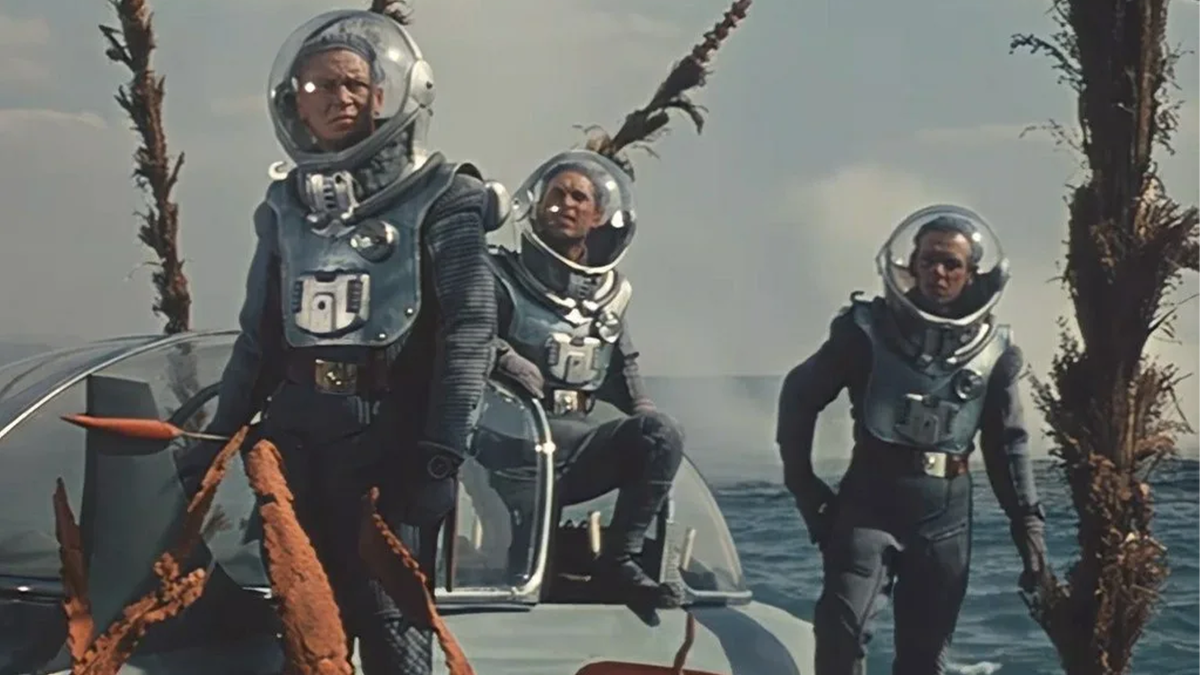 Предлагаю начать с советской классики. Да и в целом «Планета бурь» — это классика фантастики, так как фильмом вдохновлялся и Стэнли Кубрик для своей «Космической Одиссеи», а это считается лучшим космофильмом всех времён, и Джордж Лукас для «Звёздных войн», а это самая популярная франшиза в своём жанре. К Венере приближается первая космическая экспедиция из трёх кораблей. К сожалению один из кораблей гибнет от столкновения с астероидом. Два оставшихся экипажа, в составе которых имеются иностранец и его робот Железный Джон, решают всё же высадиться на Венеру и они даже не представляют, что их там ждёт.