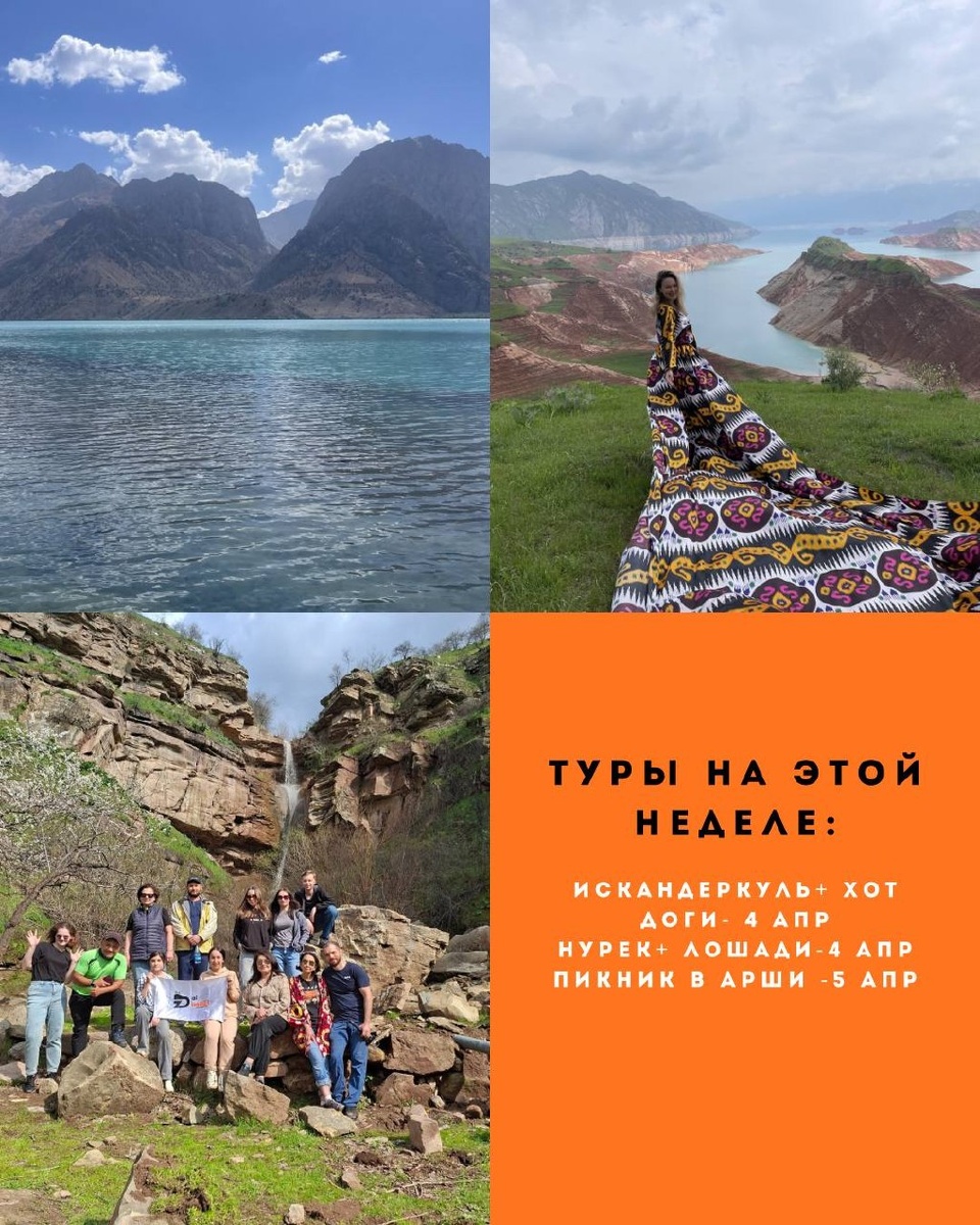 🕔 06:00 - 19:00 💺 ДОСТУПНО: 10 мест 🥾 Сложность: 4/10 💳 240 сомони ✅ Включено: транспорт туда и обратно, гид, хот доги 4 апр, сб - Нурек (летающие платья, лошади и хот - доги) 🕔 7:00 - 18:00 💺 ДОСТУПНО: 10 мест 🥾 Сложность: 5/10 💳 230 сомони 🚗Точка выезда : Шоколадница, супермаркет Ситора ✅ Включено: транспорт, гид, горячий чай, хот доги, лошади, летающие платья и входные) 5 апр, вс - Водопад в Арши - большой пикник (плов, весеннее блюдо сиалаф, хот доги, летающие платья, живая музыка) 🕔 8:00 - 18:00 💺 ДОСТУПНО: 10 мест 🥾 Сложность: Никакой 💳 260 сомони 🚗Точка выезда : Шоколадница, супермаркет Ситора ✅ Включено: транспорт, ггорячий чай, хот доги, плов, сиалаф, летающие платья) Запись: Telegram: @daidushki_tours 📞 +992 989 093 020