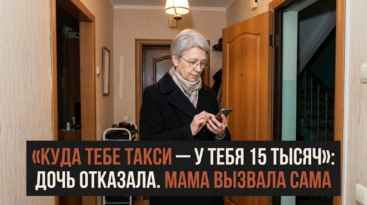 Нина проработала тридцать восемь лет. Платила взносы. Вырастила дочь. Содержала квартиру. Она умеет считать деньги лучше, чем кто-либо в этой семье - потому что считает их всю жизнь. И если она решила потратить триста сорок рублей на такси - она посчитала. Не спонтанно, не от слабости. Сознательно.