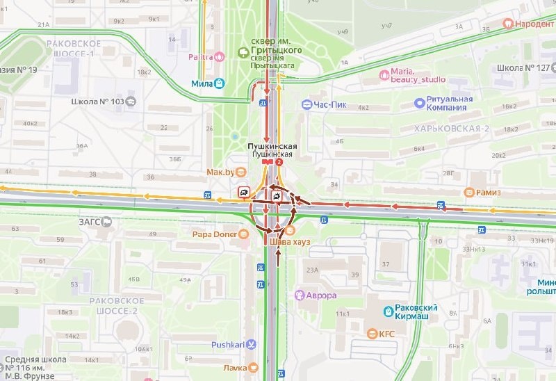 Притыцкого и пр-та Пушкина затруднено движение в обе стороны, а также со стороны улиц Одоевского и Ольшевского в направлении пр-та Пушкина Госавтоинспекция просит учитывать данную информацию при выборе маршрута. 🔴 Читайте Sputnik Беларусь в MAX