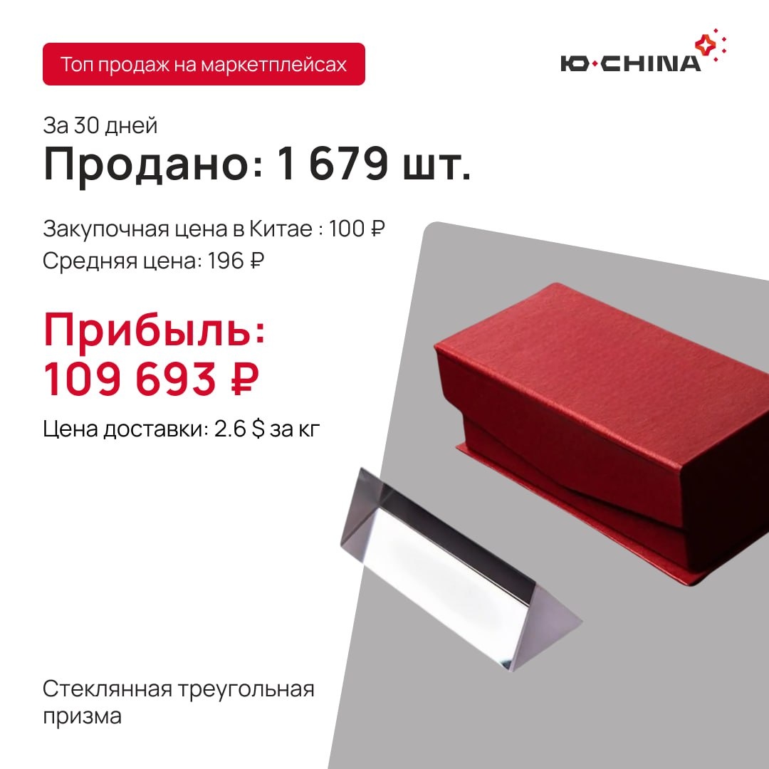 🛒 Колье на цепочке / подвеска 👉Популярный формат украшений, который регулярно появляется в подарочном и импульсном спросе 👉Хорошо подходит для продаж к праздникам, личным поводам и спонтанным покупкам 👉В карточке важны визуал, подача и ощущение «готового подарка» 👉Актуален для широкой женской аудитории и легко считывается как эмоциональная покупка 🛒 Треугольная призма 👉Товар с выраженным визуальным эффектом, который привлекает внимание за счёт необычного применения 👉Подходит для подарочного сегмента, декора и товаров с вау-эффектом 👉Может заходить как нестандартная позиция для расширения ассортимента 👉Хорошо работает в карточке через фото результата и демонстрацию самого эффекта ✈️ Уточняйте ставки у менеджера — подберём оптимальный маршрут под ваш запрос Ю-China в TG | VK