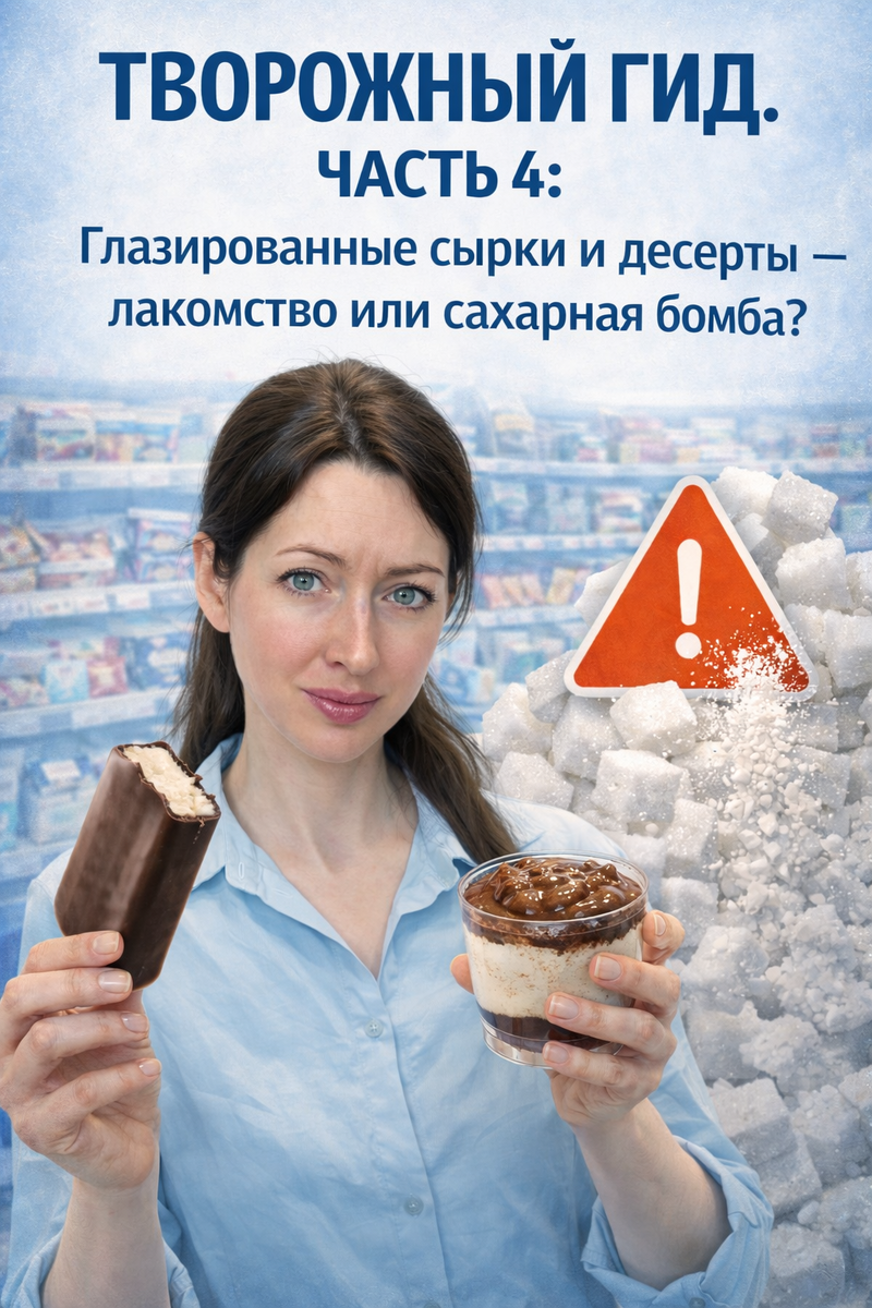 Я продолжаю наш большой марафон по молочному отделу. Если вы пропустили предыдущие серии, обязательно начните с них, чтобы собрать полную картину: Также у меня на канале вы найдете много полезных ПП-рецептов из творога: Сегодня на очереди самая коварная категория — творожные десерты и глазированные сырки. Это зона, где маркетинг побеждает здравый смысл, а полезный завтрак превращается в «инсулиновую бомбу». Сегодня разбираем, на что вы на самом деле тратите деньги и почему ваш организм протестует после такой еды. Когда мы говорим о мягком или рассыпчатом твороге, мы обсуждаем чистоту белка. Но в десертах в игру вступают жиры и сахара. Вы уверены, что ваш десерт — это кальций? В 90% сырков на полке вместо какао-масла вы найдете «заменитель какао-масла лауринового типа». Это тугоплавкие растительные жиры (трансжиры). Их температура плавления выше температуры человеческого тела. Они буквально «заклеивают» ворсинки кишечника, создавая колоссальную нагрузку на печень. В чем опасность сочета