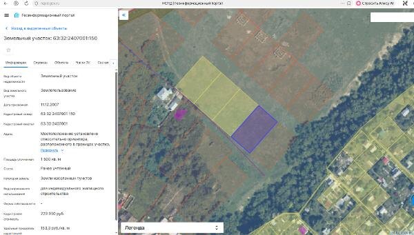 Название: земельный участок, государственная собственность на который не разграничена с кадастровым номером 63:32:2407001:150, площадью 1500