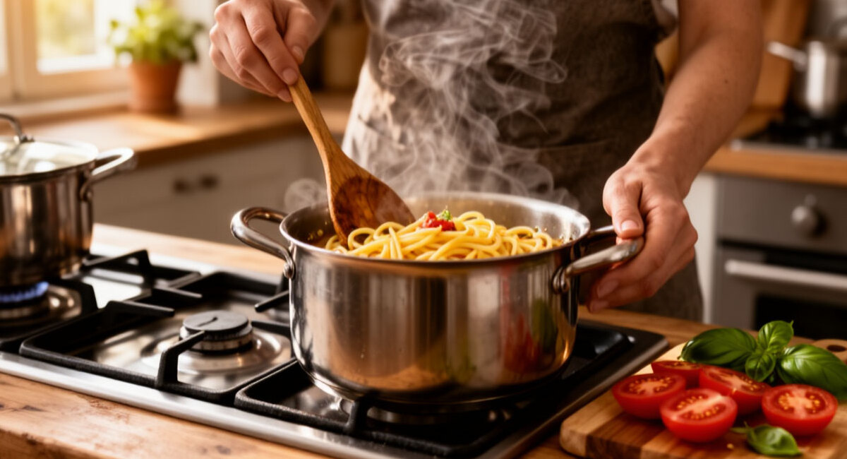 Готовить макароны умеет каждый. Вода, соль, пачка из магазина, десять минут кипения и дуршлаг. Так делали десятилетиями, так делают до сих пор. Результат предсказуем: слипшиеся комки или сухая масса, которую приходится спасать маслом и кетчупом. Но стоит только копнуть глубже, как выясняется: привычный метод варки — это кулинарное преступление против вкуса.