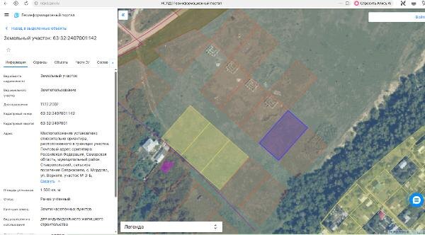 Название: Земельный участок, государственная собственность на который не разграничена с кадастровым номером 63:32:2407001:142, площадью 1500