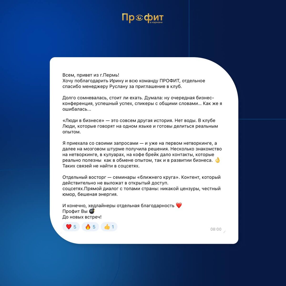 ❤️ Конференция позади, а отзывы всё приходят. И знаете, что в них общее? Никто не ожидал, что будет вот так хорошо. Люди приезжали с сомнениями: «ну очередная бизнес-конференция». А уезжали с решениями, контактами и зарядом, который, по словам одного из участников, «не сравнится ни с одним клубом». Один участник сравнил нашу встречу с барокамерой: «давление выравнивается, дышится легче, тело рвётся к свершениям»😄 Мы делаем эти встречи для вас и очень рады, когда они попадают в точку. Спасибо каждому, кто был с нами! Увидимся на следующей конференции и она будет ещё лучше.