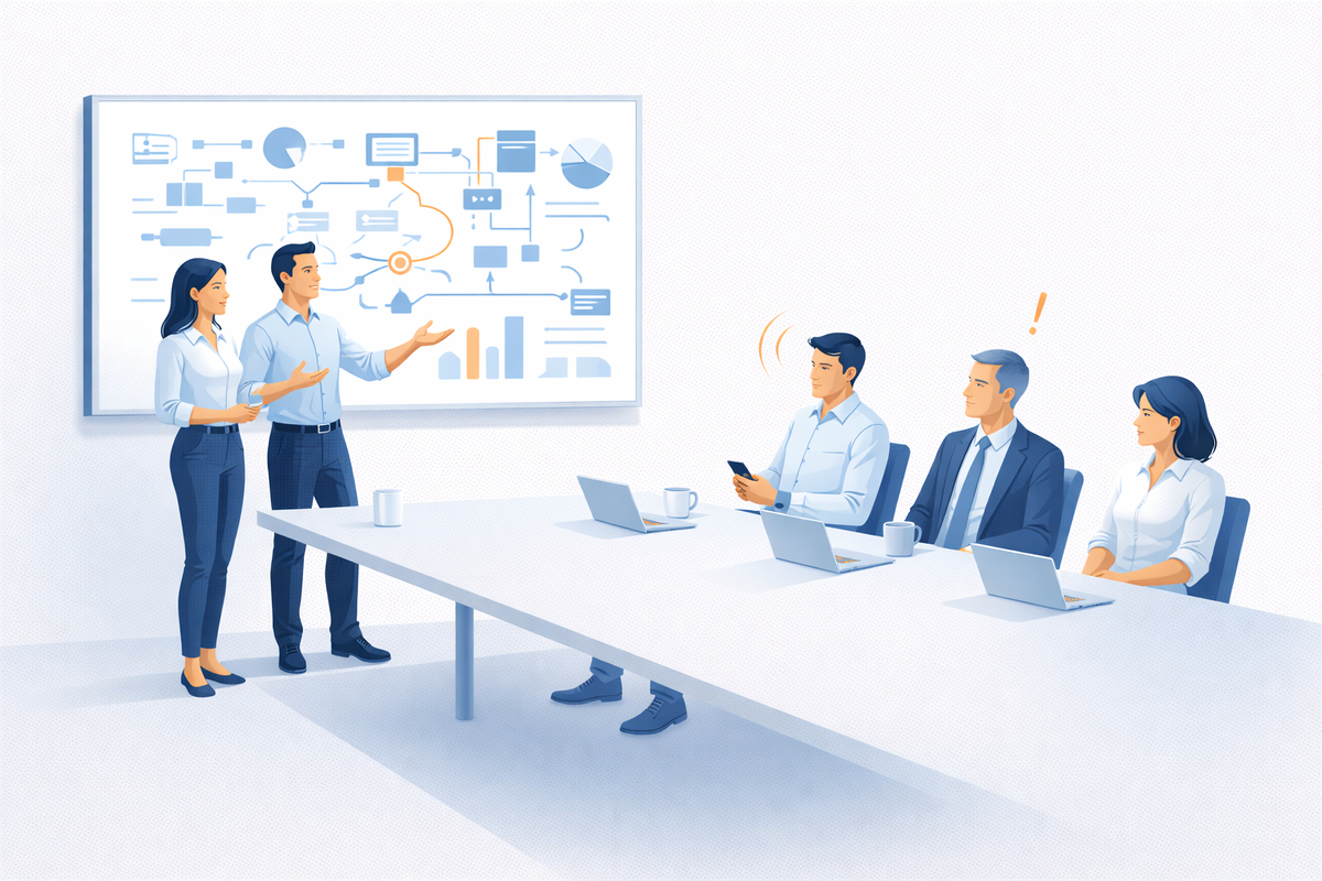 Здесь важно не путать точность и ясность. Команды часто стремятся сказать правильно, из-за чего формулировка обрастает сложными словами и конструкциями. В итоге она становится формально корректной, но практически нечитаемой и не воспринимаемой.