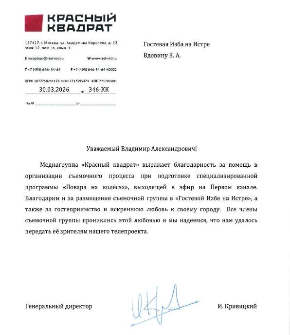В крайнем выпуске тревел-шоу «Повара на колесах» на Первом канале знаменитые шефы Петр Долгих и Алексей Ермаков устроили кулинарную битву в муниципальном округе Истра!!!! А, как вы помните, некоторое время назад, Гостевая Изба на Истре рассказывала о том, что радушно принимала у себя в гостях всю съемочную группу!!! Четыре дня первоканальщики знакомились с продукцией местных ферм и рынков, впитывая местный колорит, а ночью доверяли нам свой отдых и сон! А сегодня к нам прилетело благодарственное письмо, чему мы очень рады))) Подробнее о приключениях поваров на колесах вы можете узнать на канале RUTUBE нашей газеты https://rutube.ru/channel/25821151/