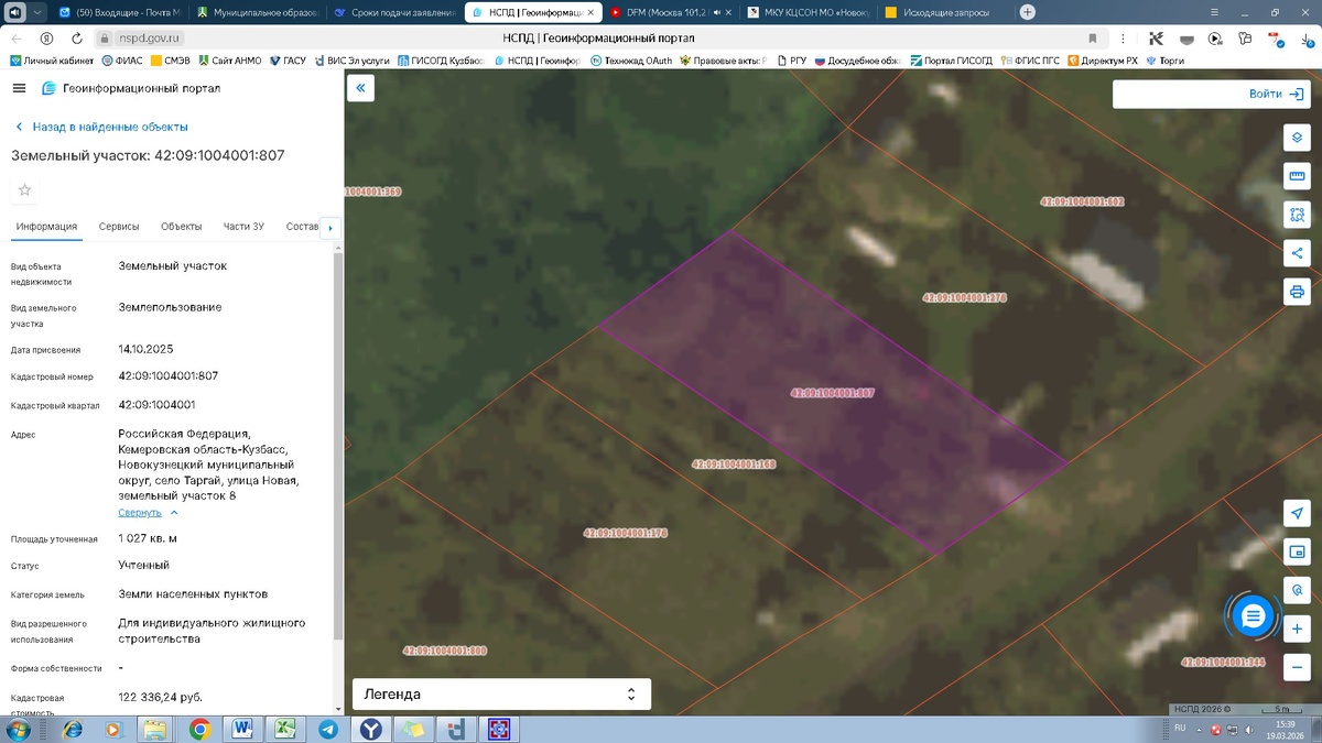 Название: Земельный участок с кадастровым номером 42:09:1004001:807 площадью 1027 кв