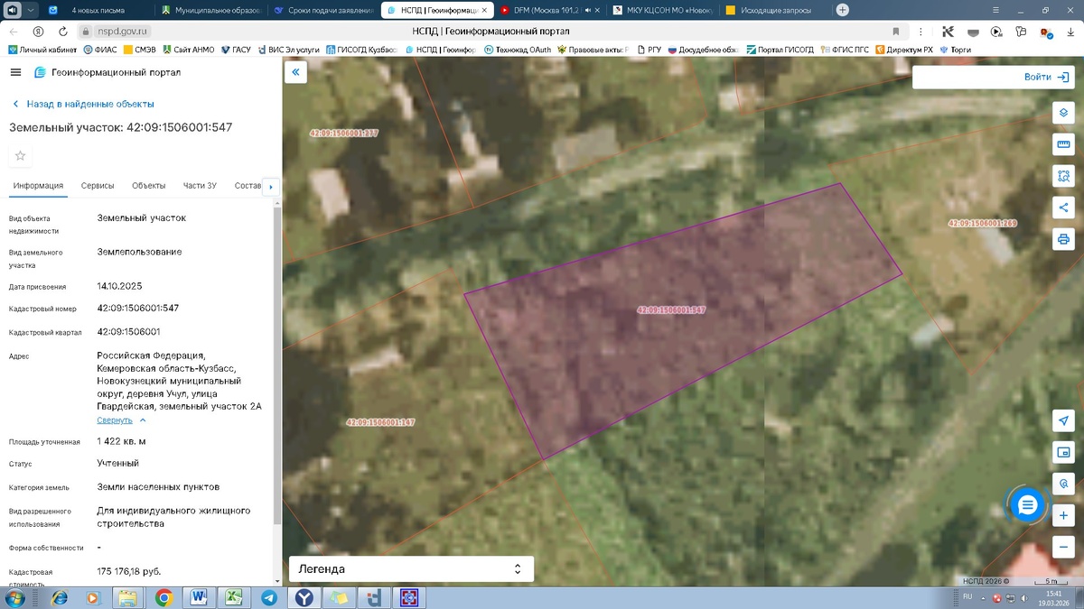 Название: Земельный участок с кадастровым номером 42:09:1506001:547 площадью 1422 кв