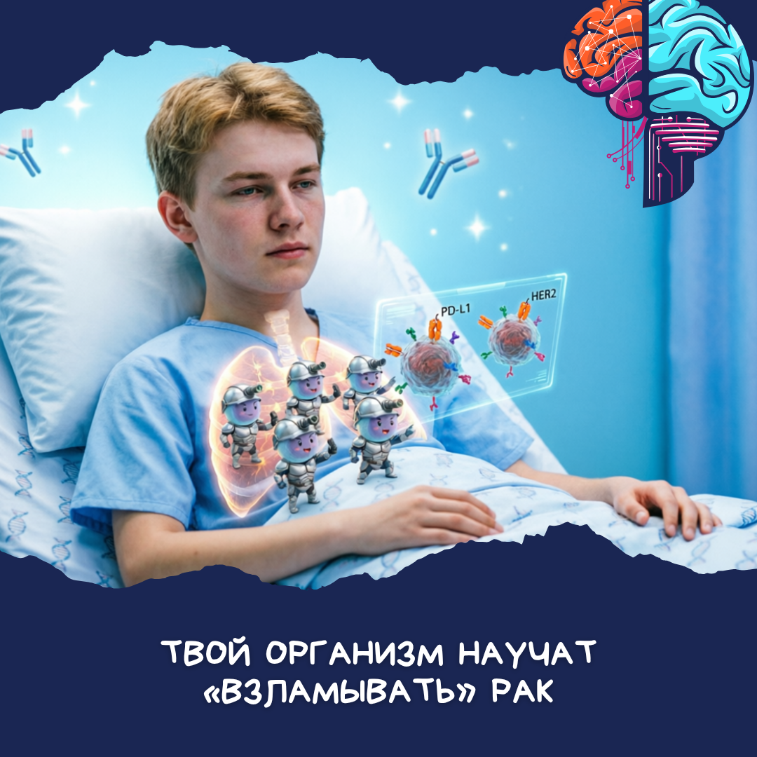 Знаешь ли ты, что прямо сейчас внутри тебя идет настоящая «война престолов» на микроуровне? Пока ты листаешь ленту или пьешь чай, в твоем теле постоянно происходят мутации. Это нормальный процесс: триллионы клеток делятся, и иногда в их «чертежах» случаются ошибки. В этот самый момент у любого здорового человека могут появляться потенциальные раковые клетки. Но не паникуй — у тебя есть собственная служба безопасности. Твой иммунитет работает как продвинутый антивирус: он патрулирует организм, находит дефектные клетки и моментально их уничтожает, не давая им превратиться в проблему. Проблема в том, что рак — это не просто внешняя инфекция, а «сломанная» часть тебя самого. Иногда коварные клетки учатся маскироваться. Они надевают невидимые плащи, притворяются здоровыми или даже выделяют специальные вещества, которые буквально усыпляют твой иммунитет. В итоге защитные Т-клетки просто проходят мимо опасного объекта, считая, что всё в порядке. Именно этот баг в системе защиты долгое время о