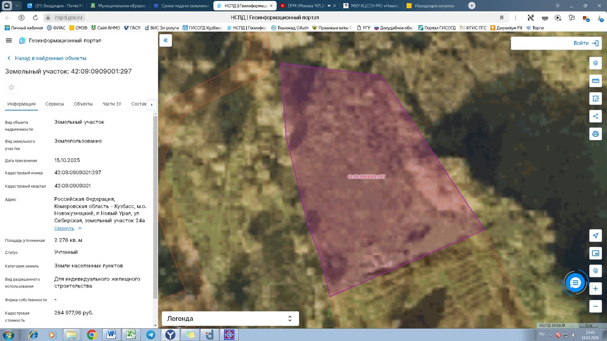 Название: Земельный участок с кадастровым номером 42:09:0909001:297 площадью 2 276 кв