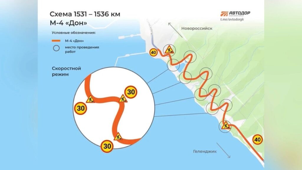 На федеральной трассе М-4 «Дон» в районе Геленджика введут временные ограничения движения. Об этом сообщили в государственной компании «Автодор». С 1 апреля по 6 июня 2026 года на участке с 1531 по 1536 километр организуют реверсивное движение. Потоки транспорта будут пропускать поочередно с помощью светофоров на отрезках длиной от 300 до 500 метров. Ограничения связаны с проведением ремонтных работ. На участке обновят дорожное покрытие, восстановят бортовой камень и установят железобетонное ограждение. Водителей просят учитывать изменения при планировании маршрутов, а также внимательно следить за временными дорожными знаками и разметкой. Ранее «КИ» писали, что на Кубани к концу года завершат ремонт дороги Каневская — Березанская. Часть трассы уже обновили, работы ведут в рамках нацпроекта «Инфраструктура для жизни».