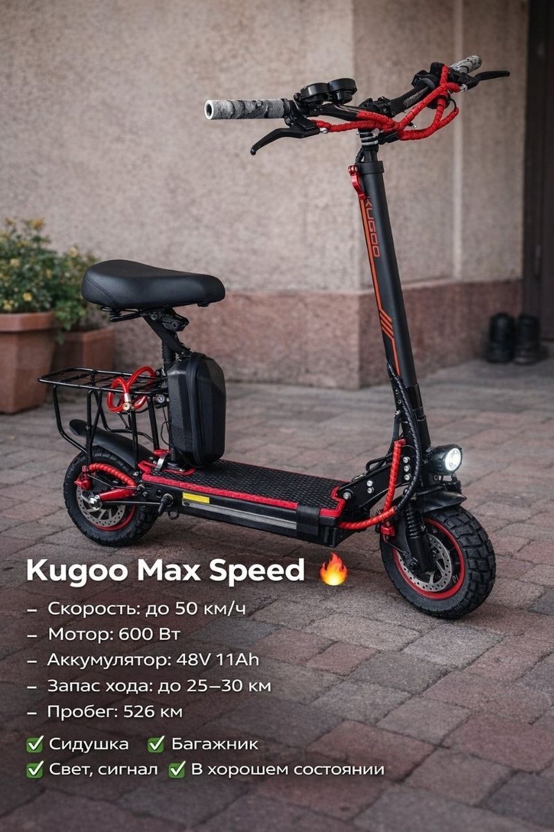 ! 🔥 Продам электросамокат Kugoo MaxSpeed Быстрый, удобный, отлично подойдёт для города и работы. ✔️ до 50 км/ч ✔️ сидушка + багажник ✔️ свет, сигнал ✔️ полностью готов к использованию Идеальный вариант на сезон — сел и поехал 😏 💰 Цена: 28 000 ₽ Пиши, пока не забрали 📲 89149782588