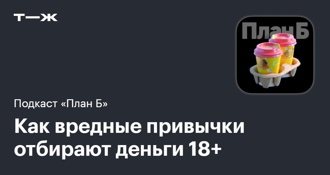 ! ☹️ Но что это будет за жизнь... Из нового выпуска подкаста «План Б» узнаем, как: 🟢Илья научился есть сладкое по часам; ⚫️Маша перестала залипать на маркетплейсах; 🔴соосновательница студии «Кубик в кубе» Ольга Кравцова бросила курить спустя 20 лет; 🟣читательницы снизили траты на кофе, алкоголь и доставки. Пусть вашей самой вредной привычкой будут наши подкасты. ✈️Слушайте их прямо в «Телеграме» 🎧или на любой удобной подкаст-платформе