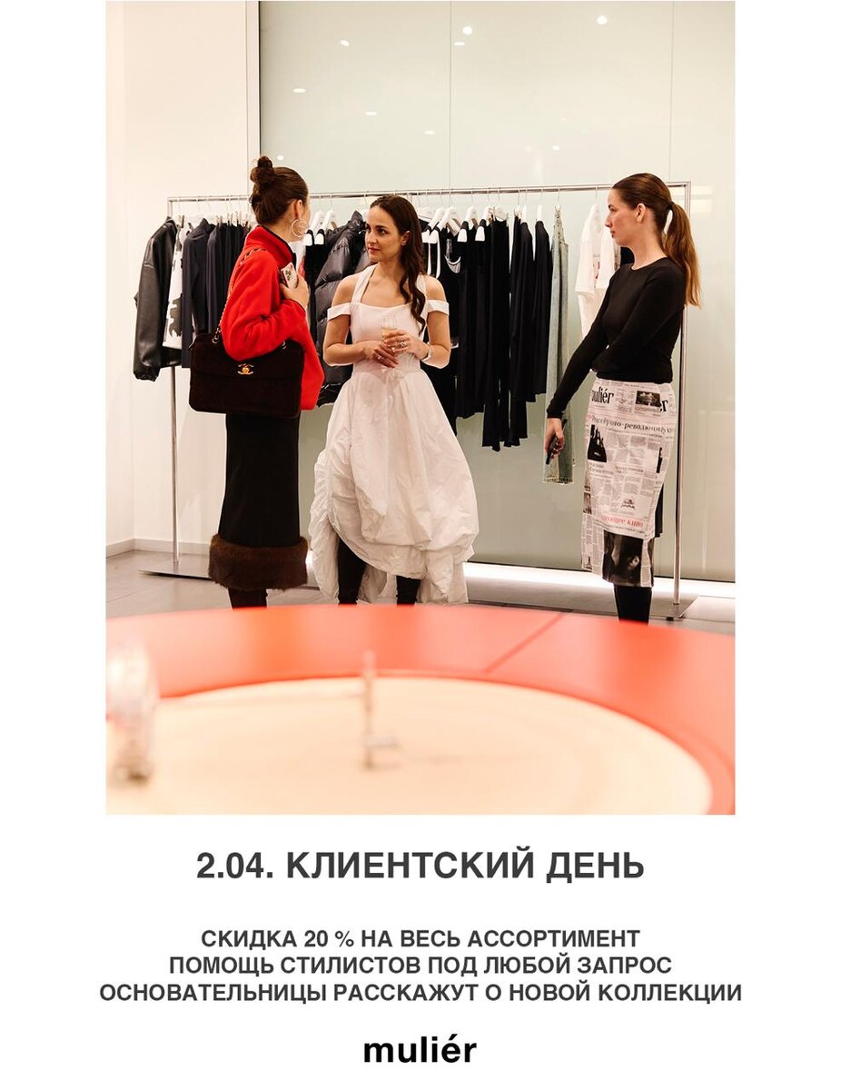2 апреля во флагманском магазине muliér на Петровке, 27 пройдет клиентский день