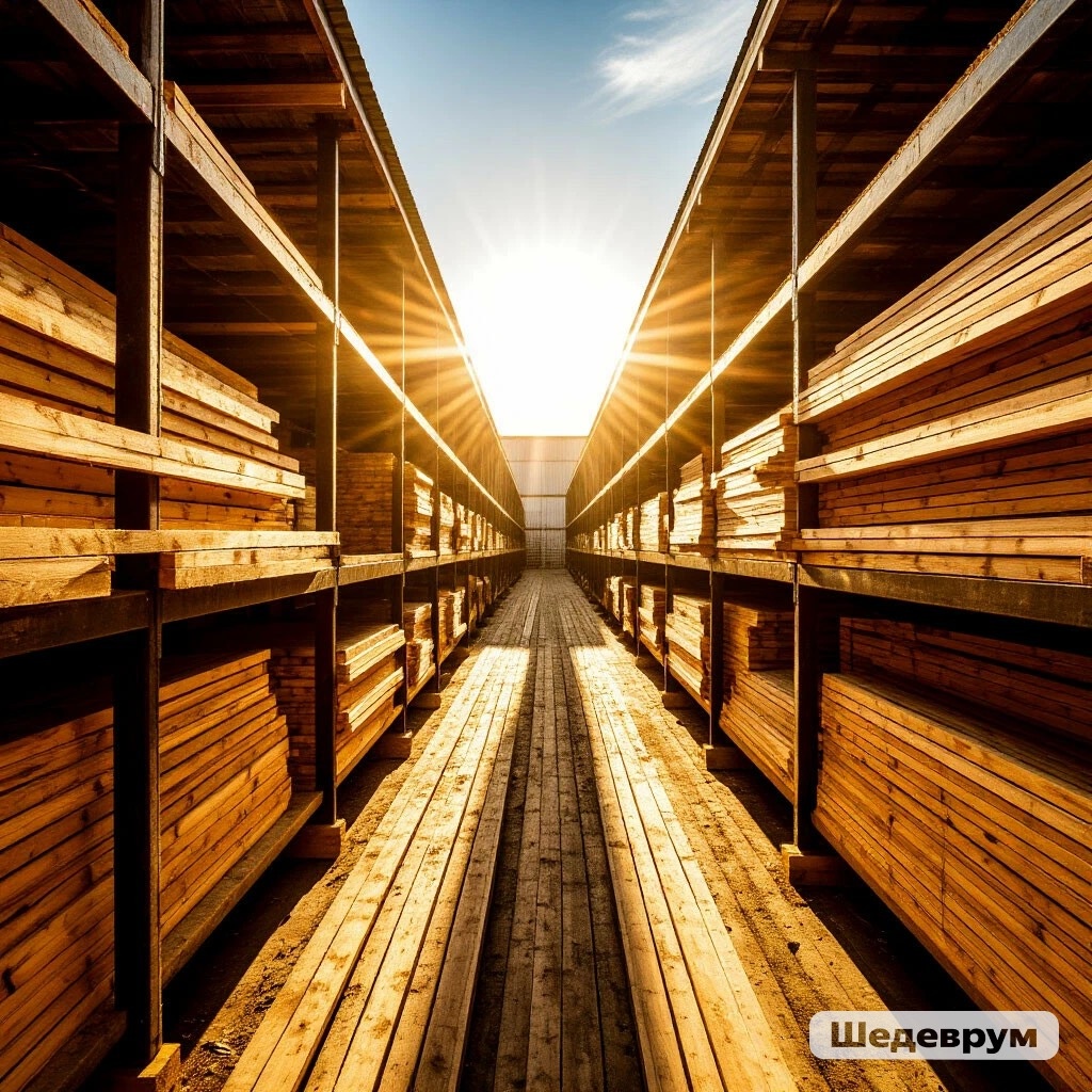 Приветствуем, друзья! Мы в "Много Леса" знаем, как важна каждая доска, каждый брус для вашего строительства. Будь вы профессиональный строитель, возводящий дом мечты, или человек, решивший построить что-то своими руками, вы вкладываете в материалы не только деньги, но и свое время, силы и надежды. И мы хотим, чтобы эти надежды оправдались на все сто! Сегодня поговорим о том, что может испортить даже самые лучшие пиломатериалы, пока они ждут своего часа на складе. Речь пойдет о нашем общем враге – солнце. Да-да, вы не ослышались. Даже на, казалось бы, защищенном складе, прямые солнечные лучи могут нанести немалый вред. Представьте себе, что вы оставили на солнце коробку с печеньем. Верхний слой быстро станет сухим и ломким, верно? С древесиной происходит нечто похожее. Когда солнечные лучи попадают на штабель пиломатериалов, они нагревают его. Но нагрев этот неравномерный. Верхние слои, которые находятся под прямым воздействием солнца, нагреваются сильнее и быстрее. Что это значит для