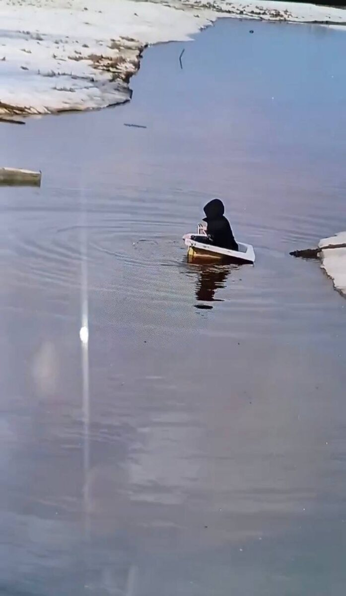 Заплыв в ванной устроил юнец из Урая по местной реке🥲Правда путешествие пришлось прервать спасателям - они выловили мальчишку и передали в