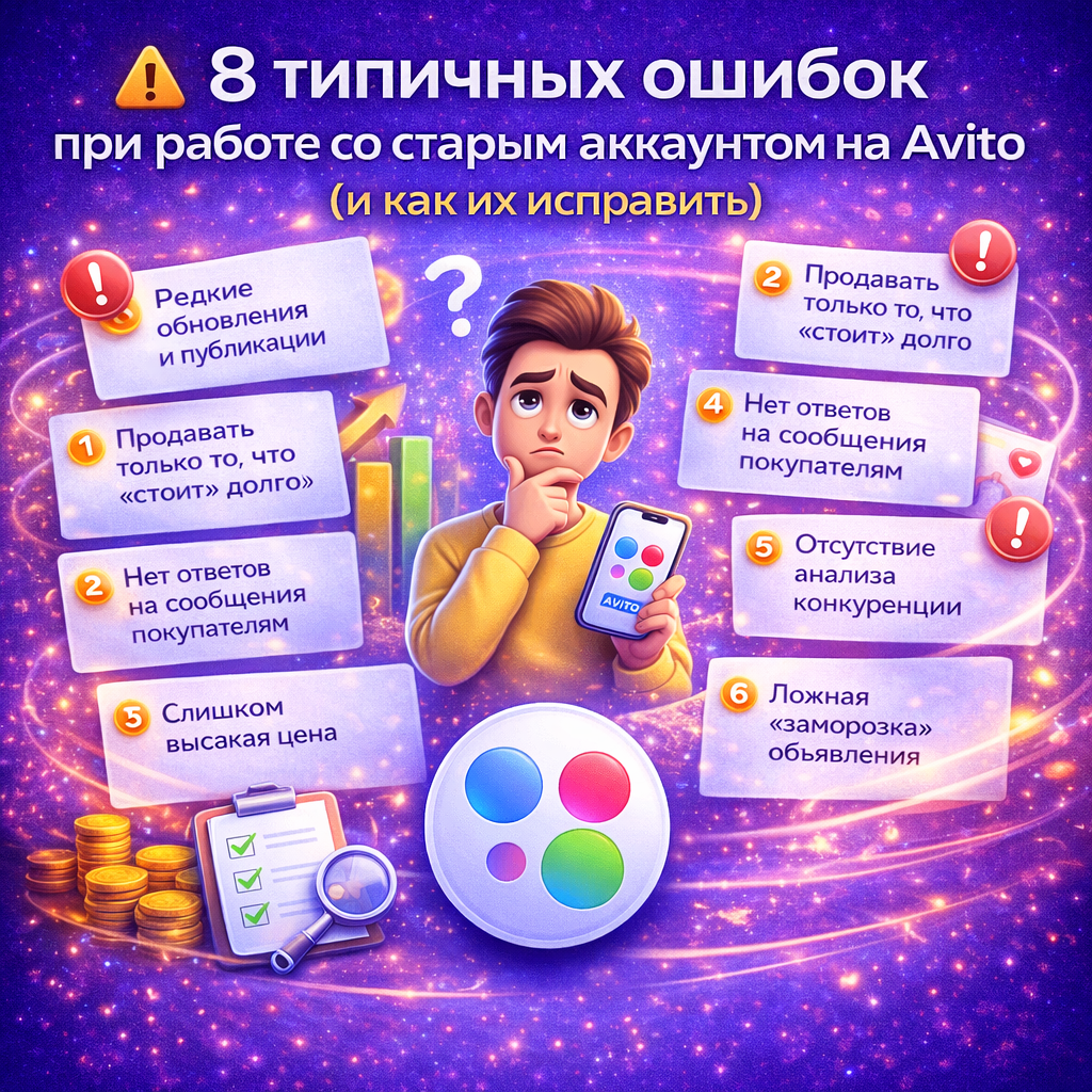 В этой статье разберем 8 самых частых ошибок, которые совершают владельцы старых аккаунтов на Avito. И главное — как их исправить.